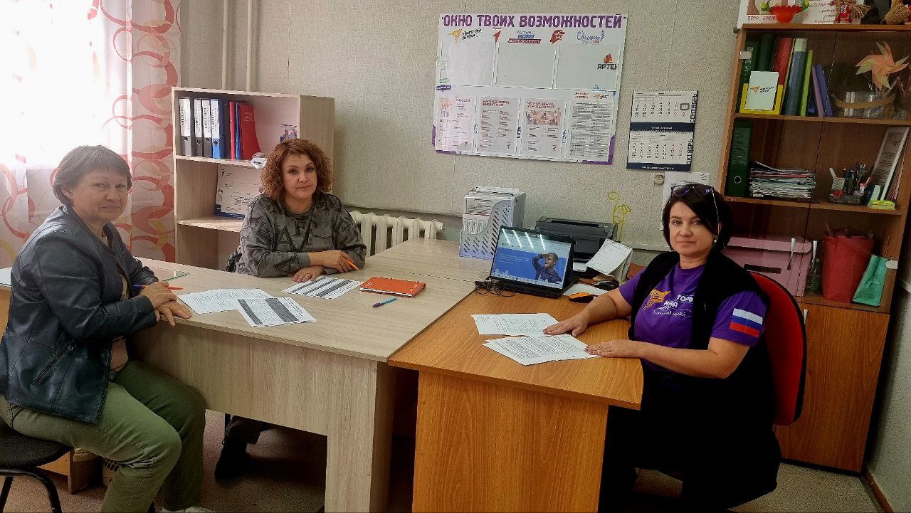 Команду Флагманской школы из Волчихинского района представили: руководитель флагманской школы учитель начальных классов МКОУ "Волчихинская СШ №2", Лариса Васильевна Шверт, советник директора по воспитанию Наталья Борисовна Монастырева и муниципальный координатор проекта "Навигаторы Детства" Юлия Геннадьевна Скачкова.