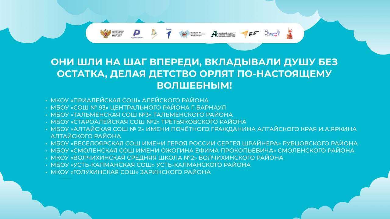 По окончанию слёта подведены итоги первого года реализации системы флагманских школ в Алтайском крае, где Волчихинская школа №2 вошла в ТОП-28лучших флагманских школ и отмечена сертификаты памятными подарками.