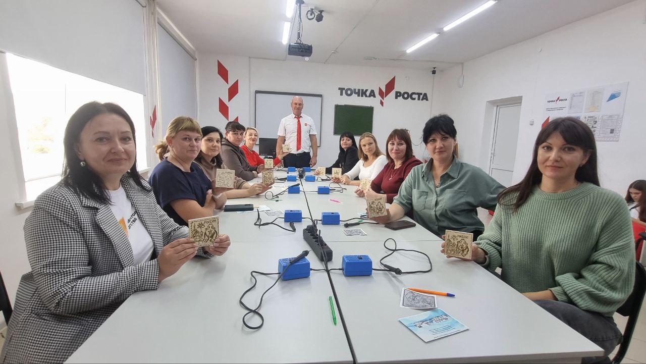 Родители погрузились в творческую атмосферу, рисуя огнем, на мастер-классе с учителем центра "Точка Роста" Виктором Петровичем Цицилиным: «Мы силой единой сильны». Участники открыли для себя забытый вид декоративного искусства, который развивает внимательность и воображение.